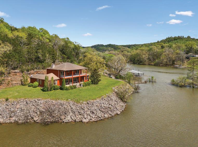 Summer is in full swing along the Tennessee River, and overlooking the water is 468 Phillips Road, in Linden, Tennessee—an extraordinary 3,270-squarefoot retreat on 39 acres of rolling woodland and private waterfront.