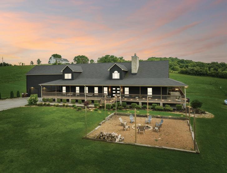 Deep in Maury County and a short drive south of Main Street Mount Pleasant, Onyx Ridge Farm exists along Golf Club Lane. If a car were to pass Onyx Ridge and keep driving, it would end up at the Mount Pleasant Country Club. But before getting lost in the links, a driver only needs to turn right on a gravel driveway that leads past rows of trees and then beautifully opens up to the panoramic view of an estate cabin, aptly painted onyx black, with wide wrap-around porches overlooking a pebbled front gathering space and fenced pastures. As a working farm, the property includes a two-bay metal shop and loft. Behind that outbuilding is a horse barn and pasture currently home to a herd of goats.