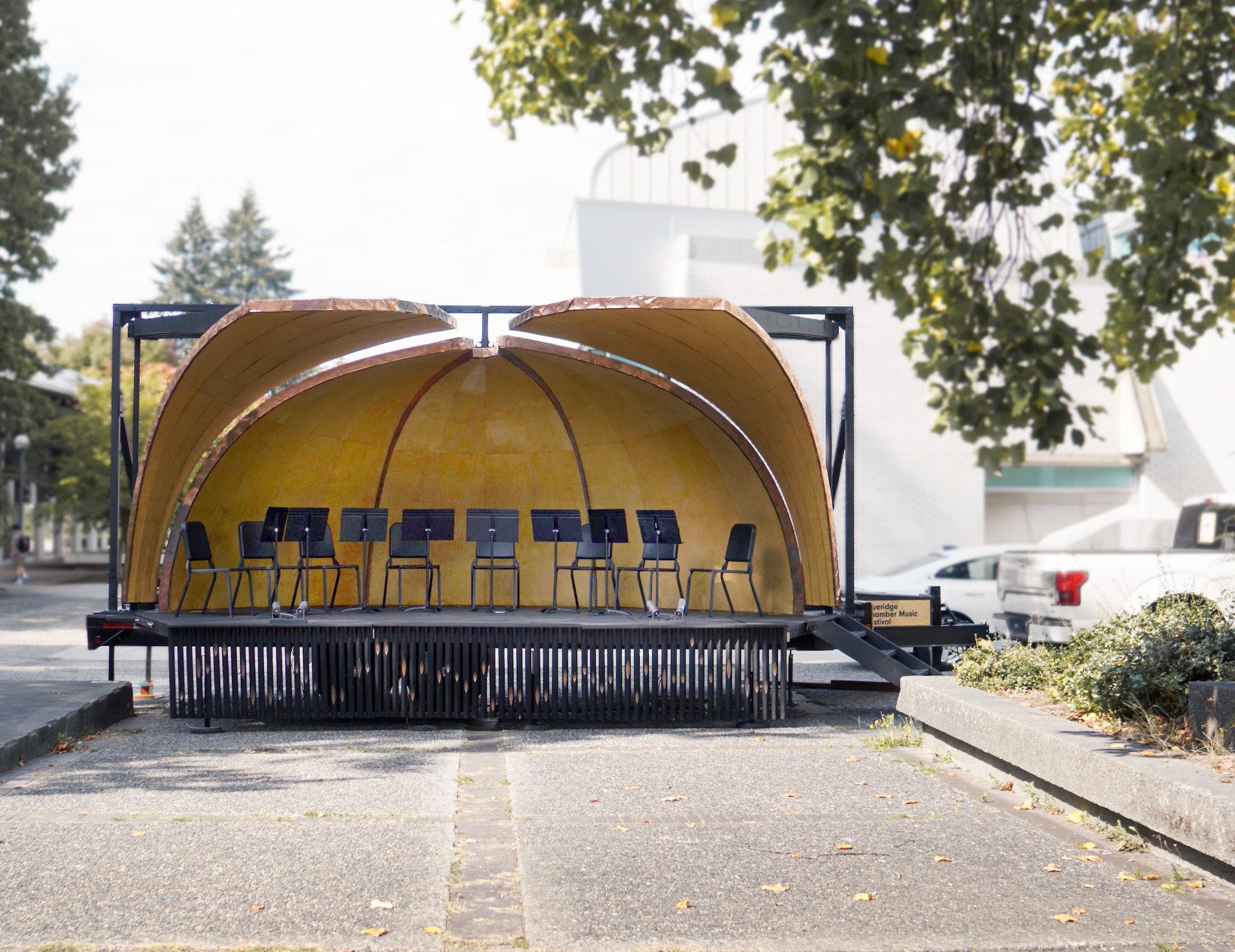 Commissioned by the Blueridge Chamber Music Group, the brief for this Design+Build project was to construct a portable amphitheater that can be transported and played in different public parks. The challenge of this project was to design a structure that could not only naturally amplify the musicians in an open park but also and be easily disassembled for transport.