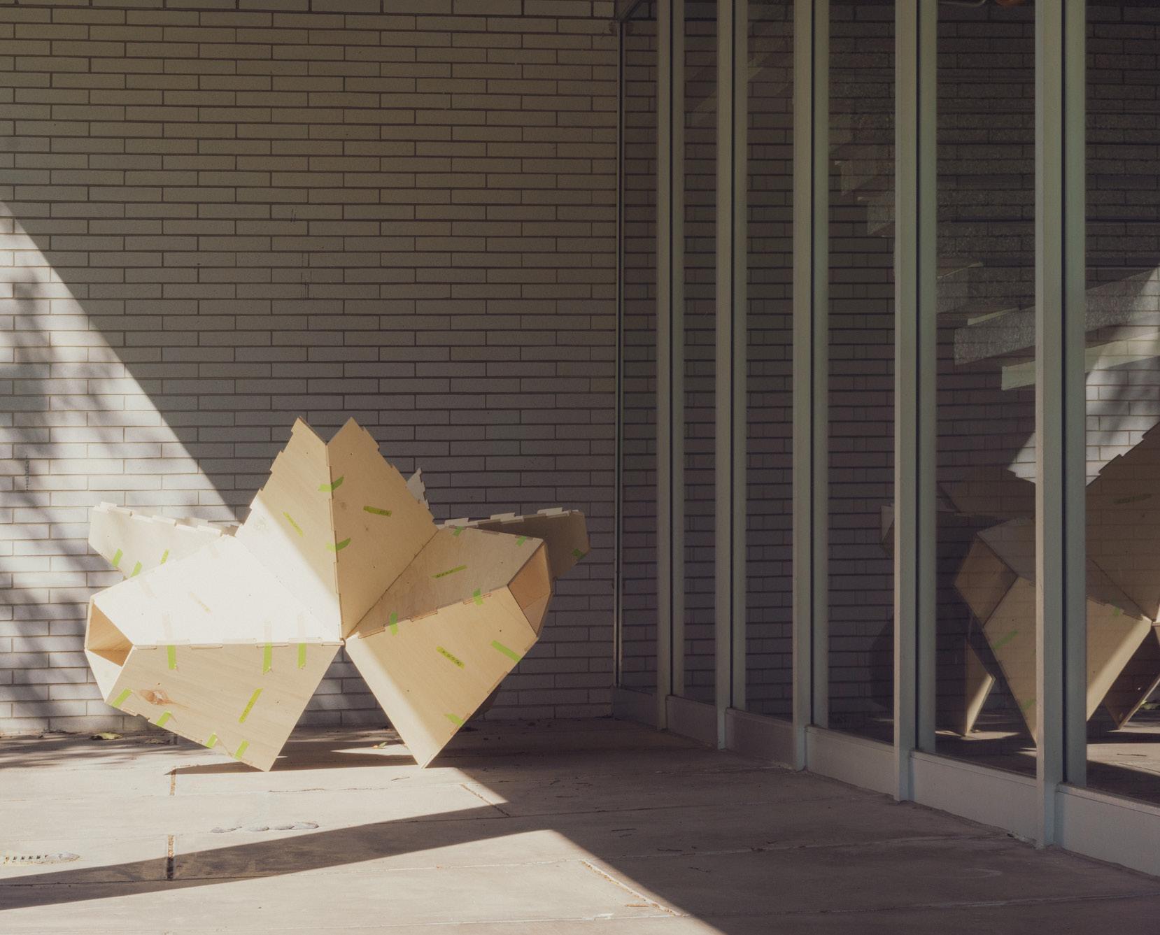 [fig. 1.3] Asssembly of milled plywood panels, Maverick Chan, 2022. [fig. 1.4] Image of interlocking box joint, Maverick Chan, 2022. [fig. 1.5] Image of structure, Maverick Chan,