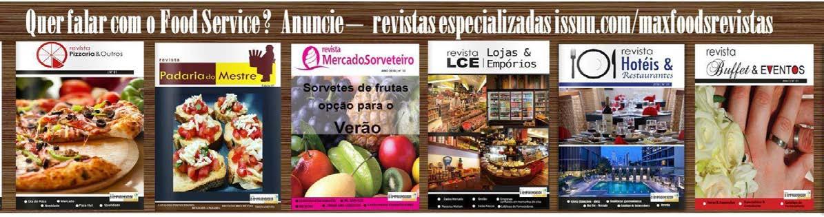 PANIFICAÇÃO BRASILEIRA (mensal - padarias, confeitarias, supermercados com padarias, indústrias de pães e bolos e correlatos)I MERCADO SORVETEIRO (mensal - sorveterias artesanais, semi industriais, industriais e similares) I CONFEITARIA BRASIL (mensal - confeitarias artesanais, semi industriais, industriais e similares)I CAFETERIA & CIA (mensal - cafeterias, coffee machine e correlatos) I LOJAS DE CONVENIÊNCIAS & EMPÓRIOS ( lojas de conveniências, empórios, mercearias, hortifrúti e outros) I BARES & CIA (mensal - bares, pubs, botecos e outros) I REFEIÇÕES COLETIVAS & CATERING (bimestral – refeitórios industriais e sociais, catering e similares) I BUFFET & EVENTOS (mensal – buffets, feiras, congressos, inaugurações, etc) I PADARIA DO MESTRE (padarias e profissioniais) I CEREALTEC (bimestral - toda a cadeia de transformadores de trigo, aveia, centeio, cevada,etc) I PASTELARIA & ROTISSERIA (mensal - pastelarias, rotisserias e similares) I PIZZARIA & OUTROS (mensal - pizzarias, creperias, tapiocarias, wraperias e outros) I HOTÉIS & RESTAURANTES (mensal - hotéis, pousadas, spas, restaurantes e similares).