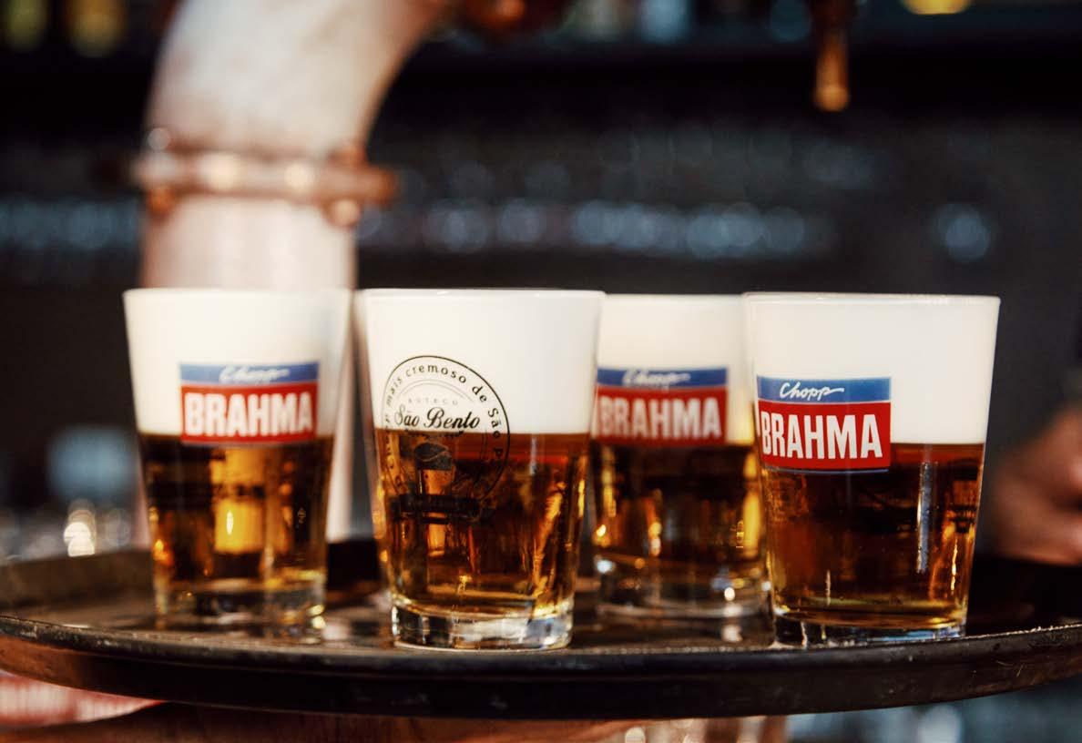 pumante brut, limão, xarope de açúcar e angostura, e o Chopp Brahma (foto, R$ 12,90) o qual, a partir de um sistema industrial exclusivo, é oferecido na temperatura ideal, mesmo nos dias mais quentes.