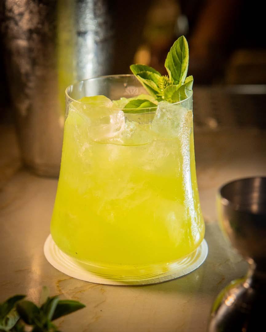 O menu disponível no bar traz opções de drinks que combinam com o verão. Entre os destaques, está o clássico Basil Smash (foto, R$ 49), de perfil cítrico e refrescante, preparado com Gin, limão siciliano, xarope simples e manjericão.