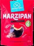 Martsipan Skriveru, 150 g tumedas šokolaadis; maasikamaitselises šokolaadis 18.60/kg