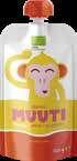 Puuviljapüree Muuti, 110 g banaani-õuna-mustika; pirni-vaarika-banaani; banaani-virsiku-mango; mango-porgandi-astelpaju 11.36/kg
