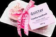 Kook Gustav vaarika, 180 g - 19.39/kg; maasika, 140 g - 24.93/kg