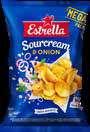 Estrella, 250 g hapukoore-sibulaga; tilliga; Ranch; Cheddari-maitseline 10.36/kg
