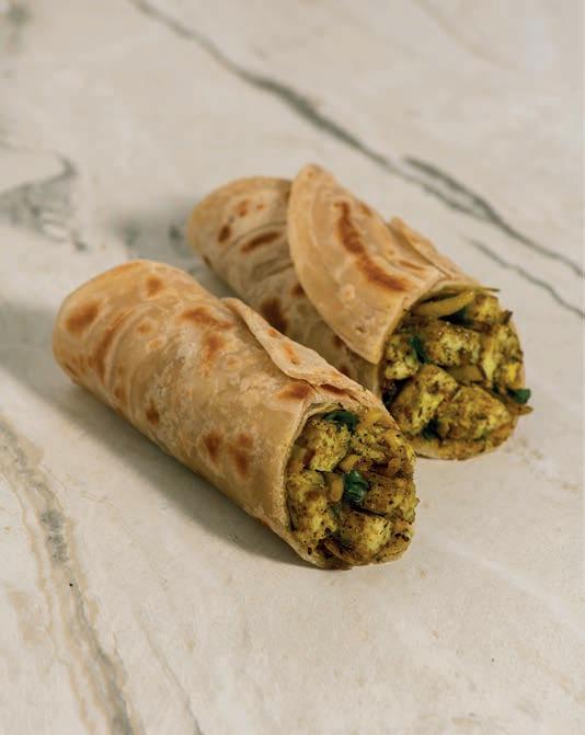 Egg Roast with Malabar Parotta ‡ 550 // $7 Chicken Mini Samosas ‡ 500 // $6 Roast Potato, Green Chilli, Truffle Oil Sandwich ‡ 500 // $6 Homestyle Paneer with Multigrain Flatbread ‡ 600 // $7 Chicken Chapli Kebab Sandwich ‡ 600 // $7