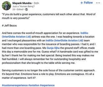 Thank you for choosing IndiGo. We recognise that you have options, and you chose us. It is our privilege to fly you.