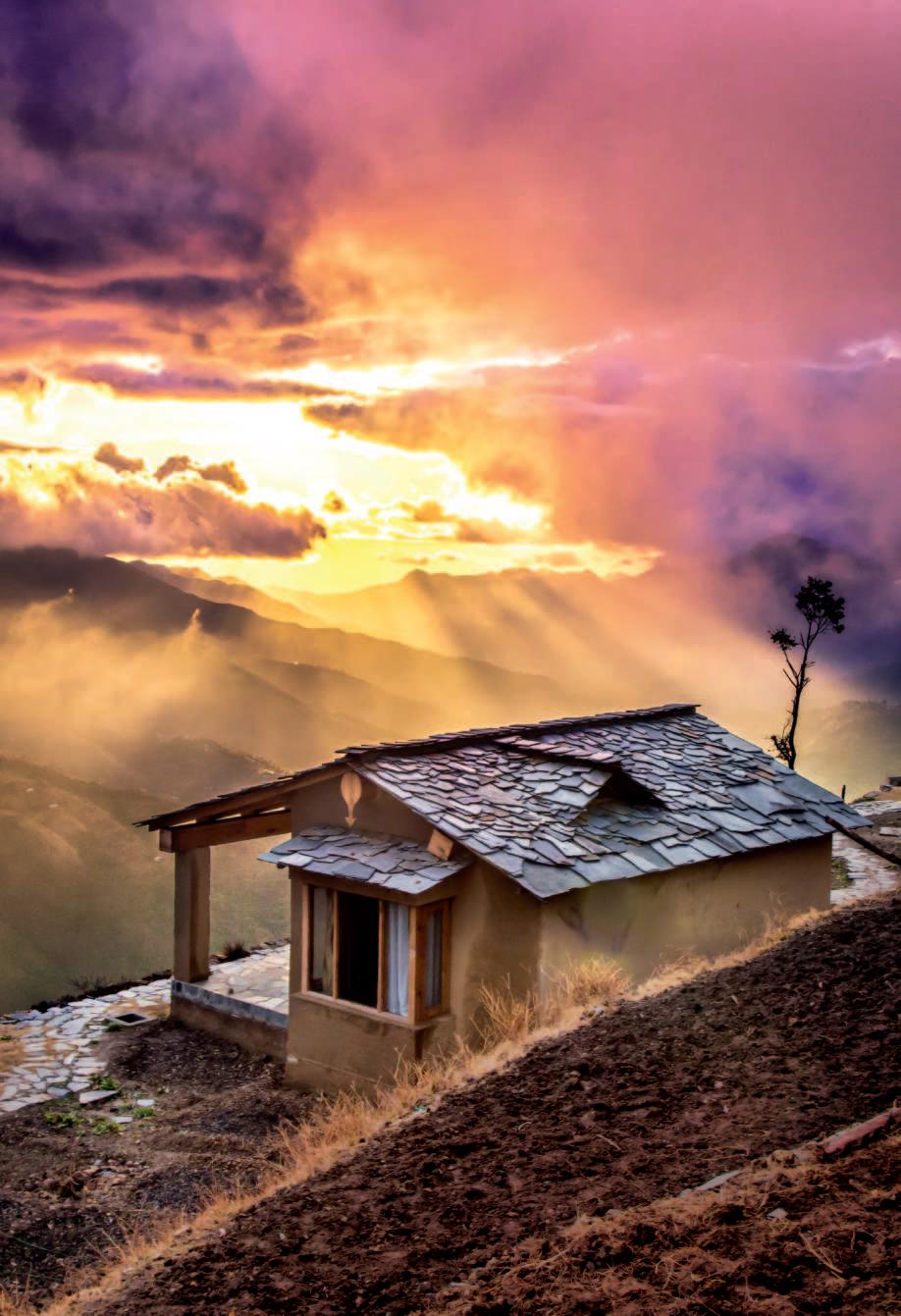 Buari offers the luxury of an authentic mountainexperience.Thebeautifullyrestored stone and wooden cottages are designed with a local aesthetic. Natural stone blocks the cold, while locally woven mats keep the 昀氀oors warm. But it’s the ever-shifting hues of the mountains, framed perfectly in the window that become addictive, tempting you to linger just one more day. Meals are freshly cooked on wood-昀椀red stoves, using