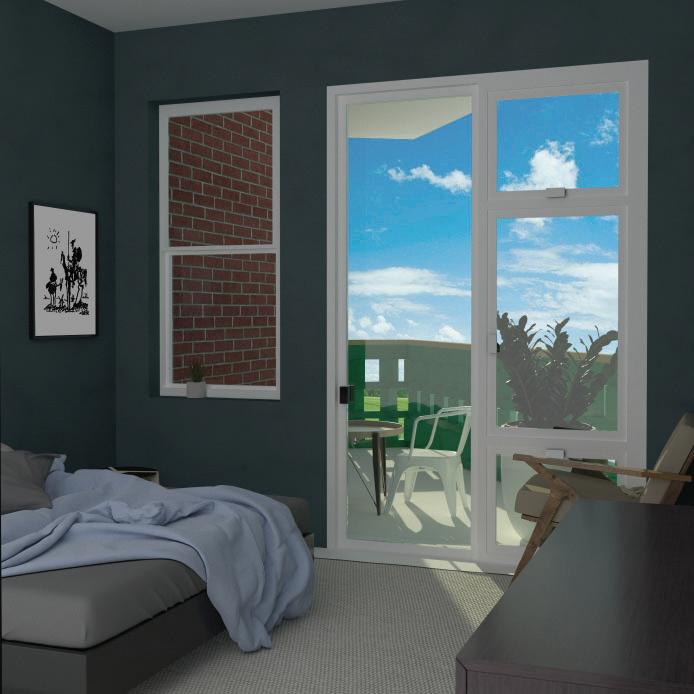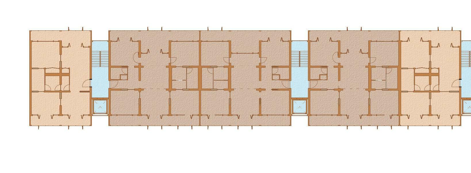 The goal of this project is to create density in the Jeff Vanderlou neighborhood of St. Louis. This density takes into consideration infrastructural issues on the scale of three adjacent blocks that incorporate water, energy, and agriculture. It is imperative that housing in these neighborhoods does not only meet standards, but provokes interest. New developments must become irresistible places to live if we are to imagine the potential impact that is intended. Special care was taken to include current residents of this neighborhood into the conversation. In coordination with my peers, a series mixed use programs was introduced in order to give structure and accessibility to the neighborhood. Central courtyards are shared by the public. The ground floor of my addition to the Eco-Block is a co-working space that is designed to provide the entire neighborhood with the access to technology and space to allow for a successful remote or in person working experience. The apartments above provide a generous corridor space that serves as a threshold from the public and private ownership of their surroundings. Special consideration was taken to ensure that the total embodied energy and annual heating and cooling costs remain below the energy output provided by the solar panels on the roof. The eco-block also has a water tower designed to the capacity of rainfall and average water usage of the three blocks.