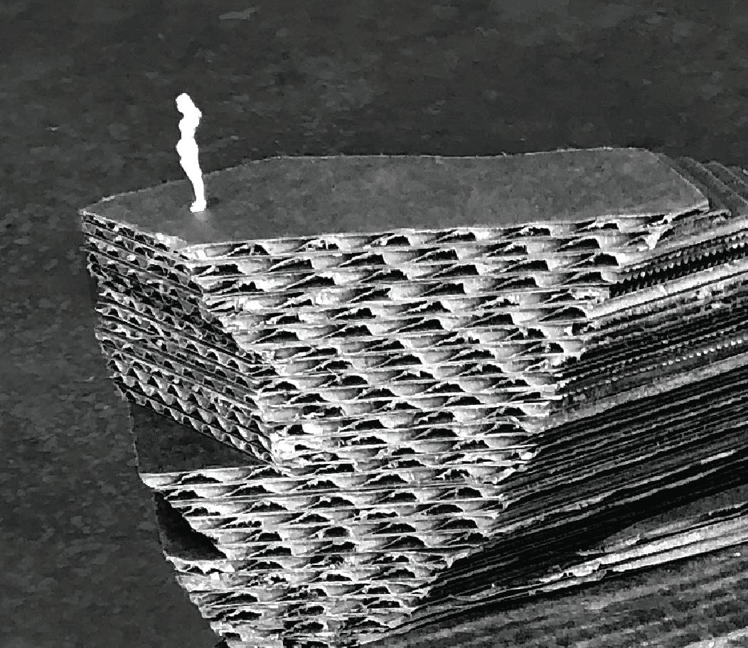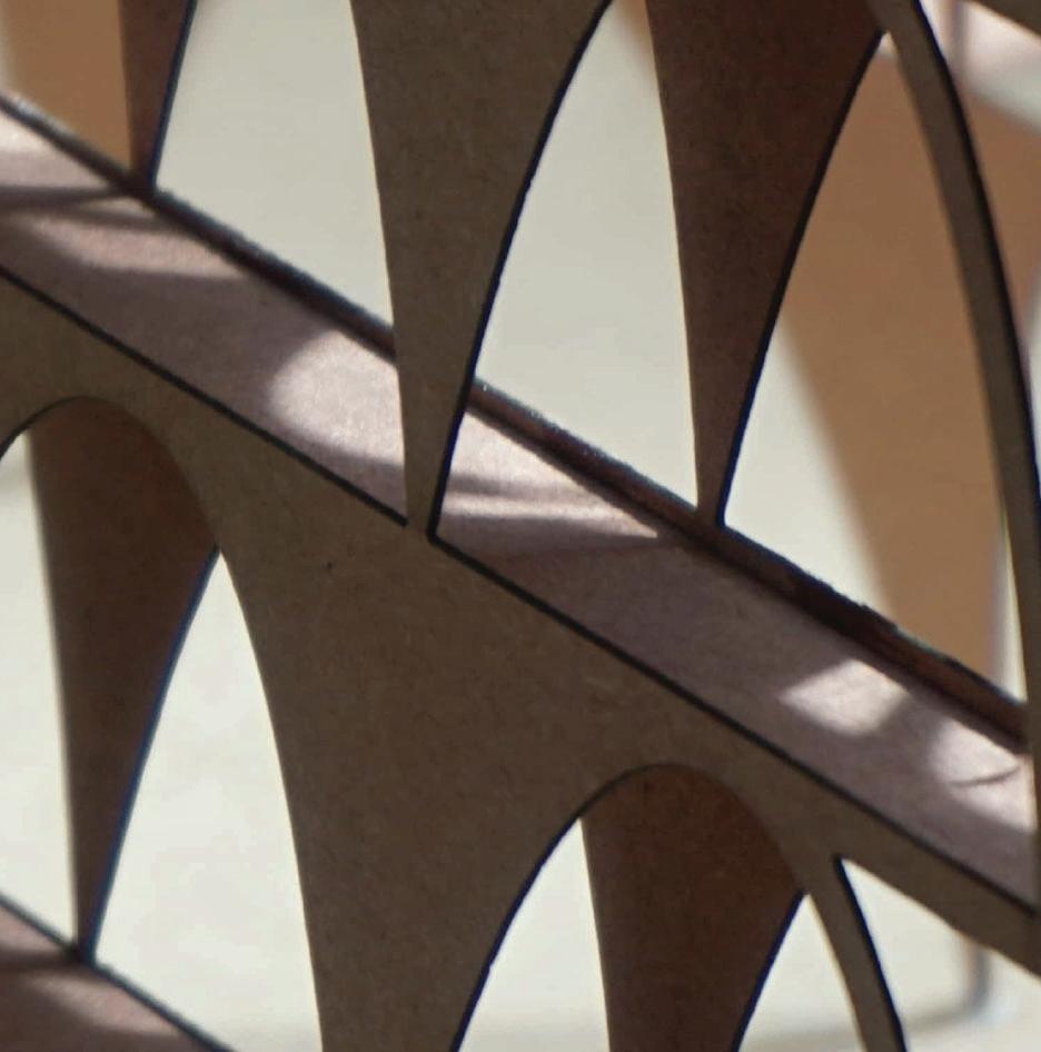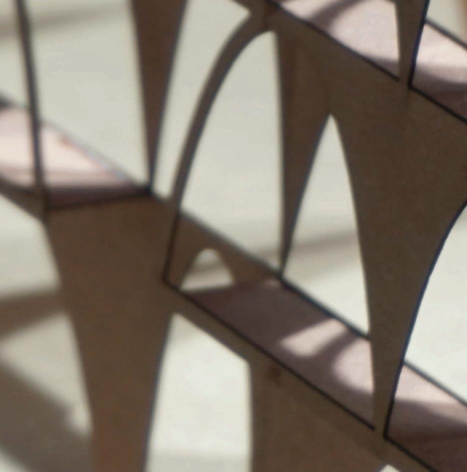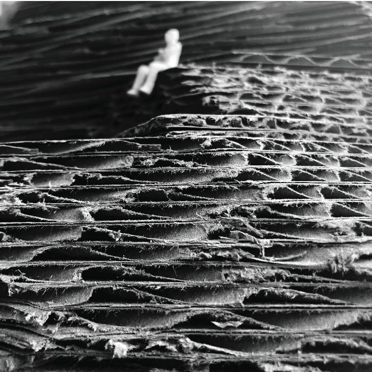 Professor Chandler AhrensThis project was a two week design sprint to create an observation tower for Forest Park, Saint Louis represented solely through a physical model. To me this project shines through its creation process in which I glued layers of cardboard together and used a bread knife to carve away the path. Several process models built up for me to understand the material and the different provocative textures presented themselves when they are cut at certain angles. Transparency and light play a strong role with the texture, as the corrugated layers cast deep shadows onto each other. The fibers of the cut cardboard also provide a frayed cilia-like fuzziness. The result is a brute forced parametricism that could thrives off of randomness, human error, and exploration.