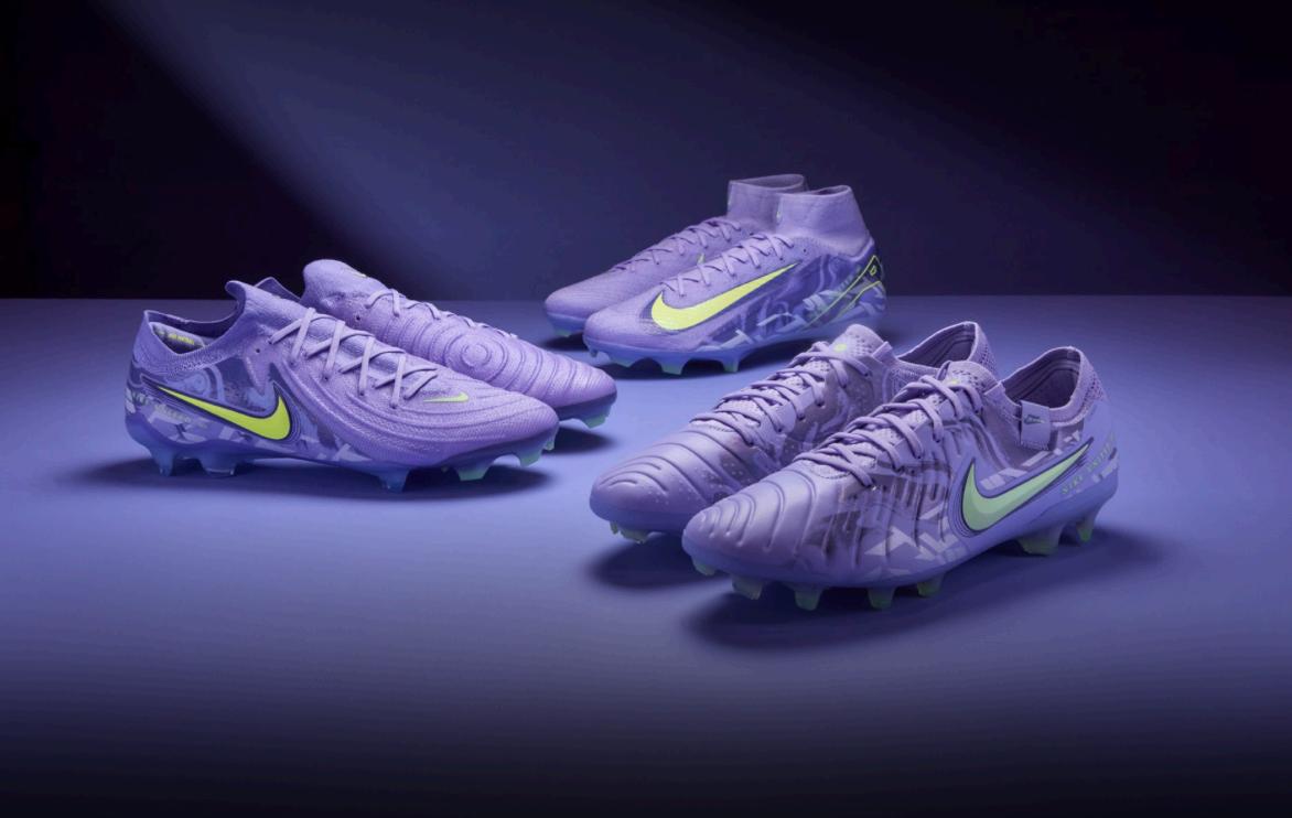 TheNikeUnitedPack2025featuresadistinctivePurpleAgate/BarelyVoltcolorway,symbolizing powerandambition.Thecleatsshowcasealavenderbasecomplementedbyvibrantvoltgreenaccents, reflectingthedynamicenergyofthewomen'sgame.Additionally,theupperpatternofeachbootis inspiredbyshatteredglass,representingthenewgenerationofathletesbreakingthroughbarriersin football.