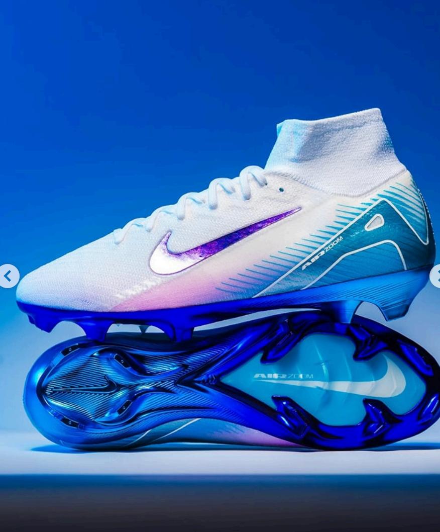 Nike's"MadAmbition"pack,releasedinJuly2024,introducesstrikingnewcolorwaysfortheirMercurial,Phantom,andTiempo soccercleatsMercurialSeries:TheMercurialVapor16andSuperfly10modelsfeaturea"GlacierBlue/BlueOrbit"color schemeThelighterblueservesasthebase,whilethedarkerbluehighlightsthebrandingThesecleatsincorporateNike'sGripKnit technologyforenhancedballcontrolandaredesignedsoleplateforimprovedspeedandstability.
