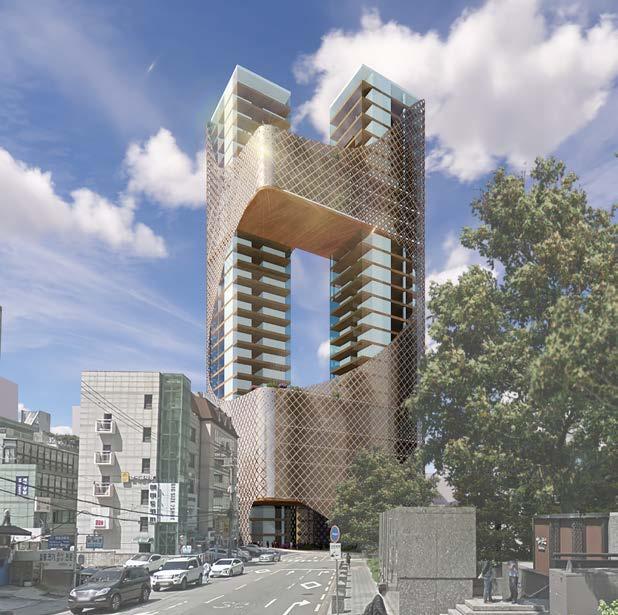 Description | This project was a collaboration between myself and another student, Kevin Toudeka. In this project, I had largely handled digital work while my partner handled physically modeling the project. We carefully planned the program to be relevant to the Korean culture, which lead us to designing a pharmaceautical and plastic surgery complex. This program includes offices, retail, and spa services for the skincare side while the clinic side includes clinics, doctor offices, and hoteling for patients and nurses. Together, these programs create a resort-like experience for anyone flying in to recieve expert plastic surgery services. The façade system is designed after an iris shutter opening and closing automatically based on the sun, but can be manually overriden in case the room owner desires more privacy or shade.