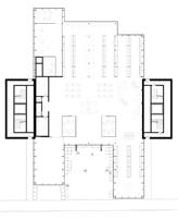 However, the library portion of this design completely contrasts the apartments, utilizing the shade created by the massive towers to become a fragile glass encasement, creating a delicate void between the masses.