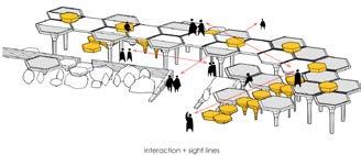 Description | Conhexion Canopy redefines the function of a canopied walkway by programming the space through the use of an interconnected system of hexagonal modules. These modules provide shelter from rain and sun for those that pass below, while also allowing access to an upper level space for a variety of activities. After multiple attemps at defining the form of both the large and small modules, a geometry that allowed an open passageway below and strong support above was found in the abstracted catenary curve of the columns, with a formwork that adapts to the height needed. The end result is space-making that transforms movement accross campus into more than just circulation; the journey becomes the destination.