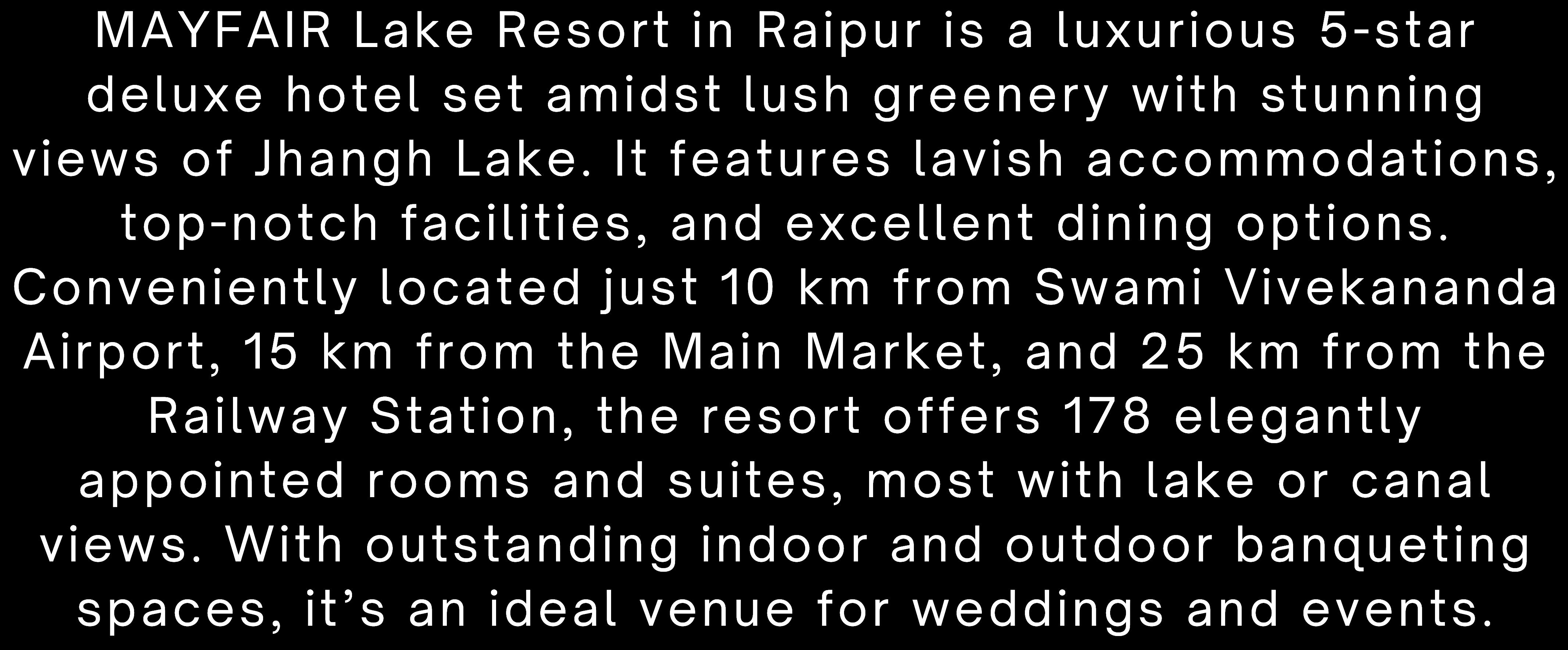 www.mayfairhotels.com/lake-resort-raipur fo.Raipur@mayfairhotels.com