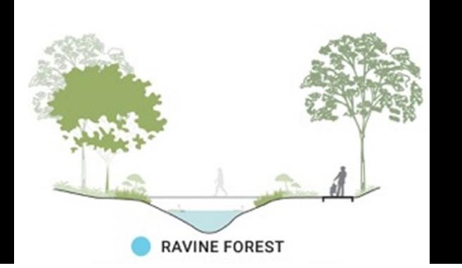 A typical Section Showing the different usage of spaces along the entire proposed wetland development
