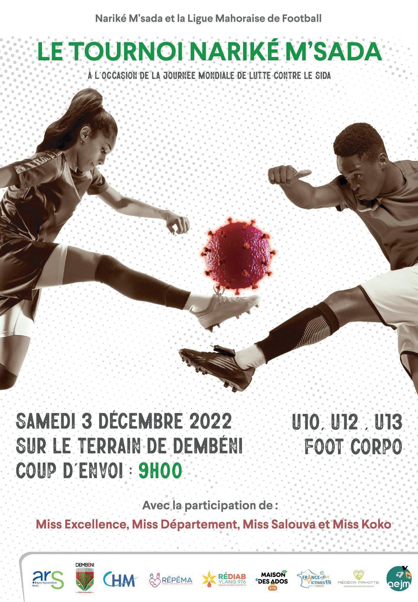 Ce samedi, Nariké M’sada organise un tournoi de football sur le terrain de Dembéni, à partir de 9 heures. Seront présents les joueurs des catégories jeunes et entreprise de la commune, ainsi que les miss excellence, département, salouva et… Les miss koko, qui participeront au match d’ouverture contre les U10 de Dembéni !