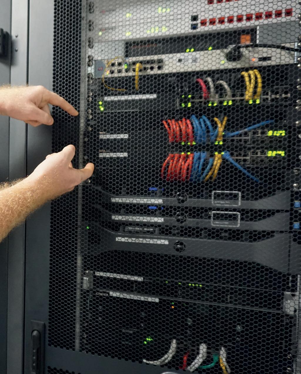 Pour assurer qu’il n’y ait aucune panne, sur le bâtiment, « tout est redondé, cela signifie que tout est en double », précise Johan Desmyter. Cela commence dès l’extérieur. À l’entrée, se trouve un poste de haute tension avec deux arrivées de deux fois 20.000 volts, ainsi que deux transformateurs. À l’arrière, deux groupes électrogènes de secours sont installés. « Si une panne arrive ou qu’il y a une maintenance, le data center peut continuer à tourner », explique-t-il.
