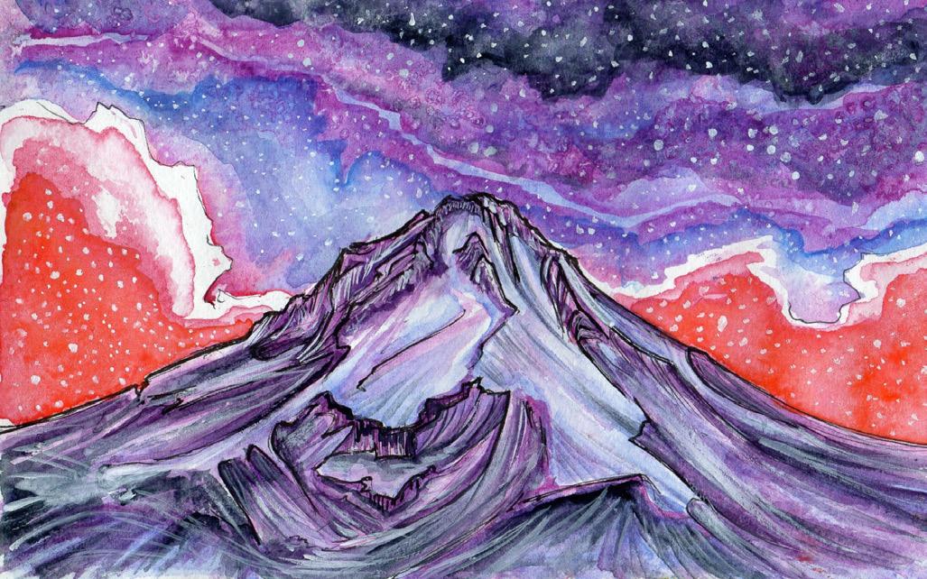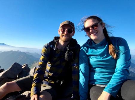 Cover: "Illuminated Rock" by Sarah Lydecker, cover by Elise Englert. Above: New member Sarah Clay on the summit of Mount St. Helens, March 30, 2018.