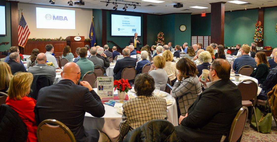 The MBA, in conjunction with The MBA Business Magazine, recently hosted its annual Economic Outlook IMPACT Luncheon on December 5 at the Association’s Conference Center in Erie. The event featured presentations on the regional, state and national economic forecasts by Ken Louie, Ph.D., of the Economic Research Institute of Erie (ERIE) at Penn State Behrend and Brian Pietrangelo of KeyBank. The event was made possible by sponsors KeyBank, E.E. Austin & Son, Inc., Allburn’s and support from ERIE and Penn State Behrend. To see full photo coverage, visit mbausa.org