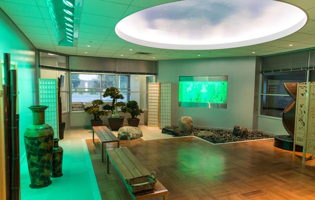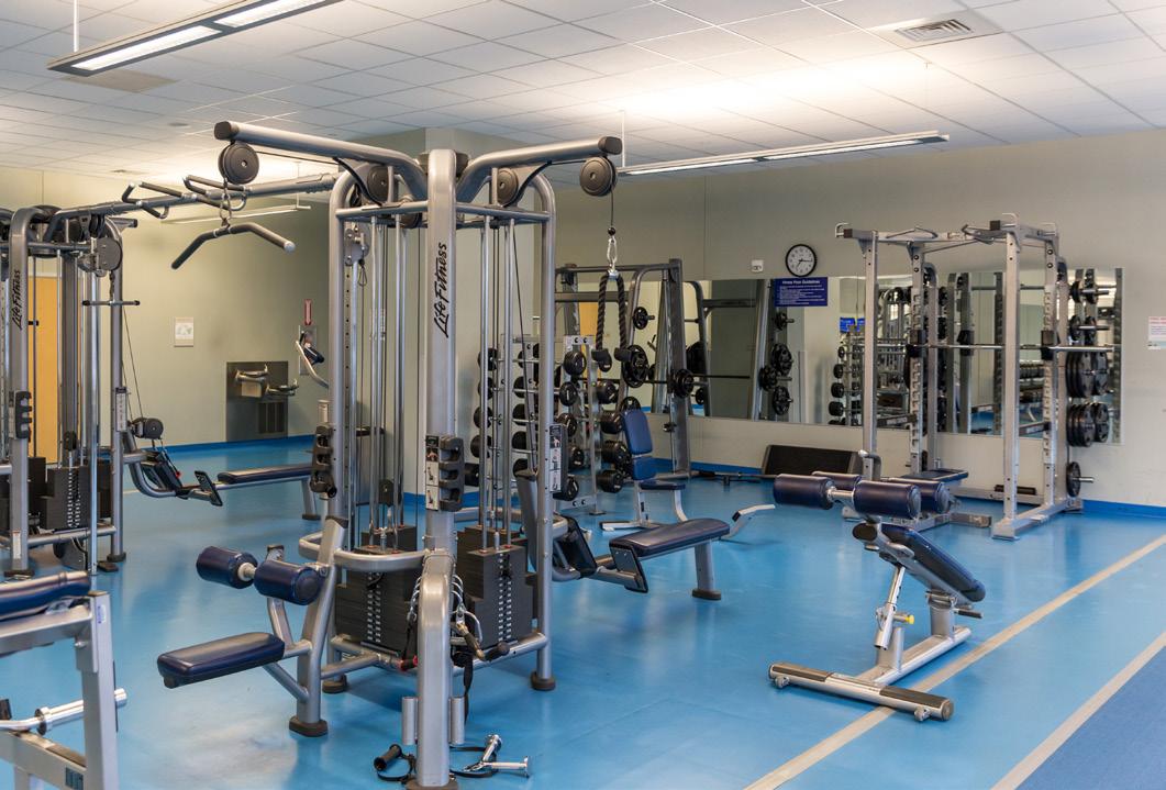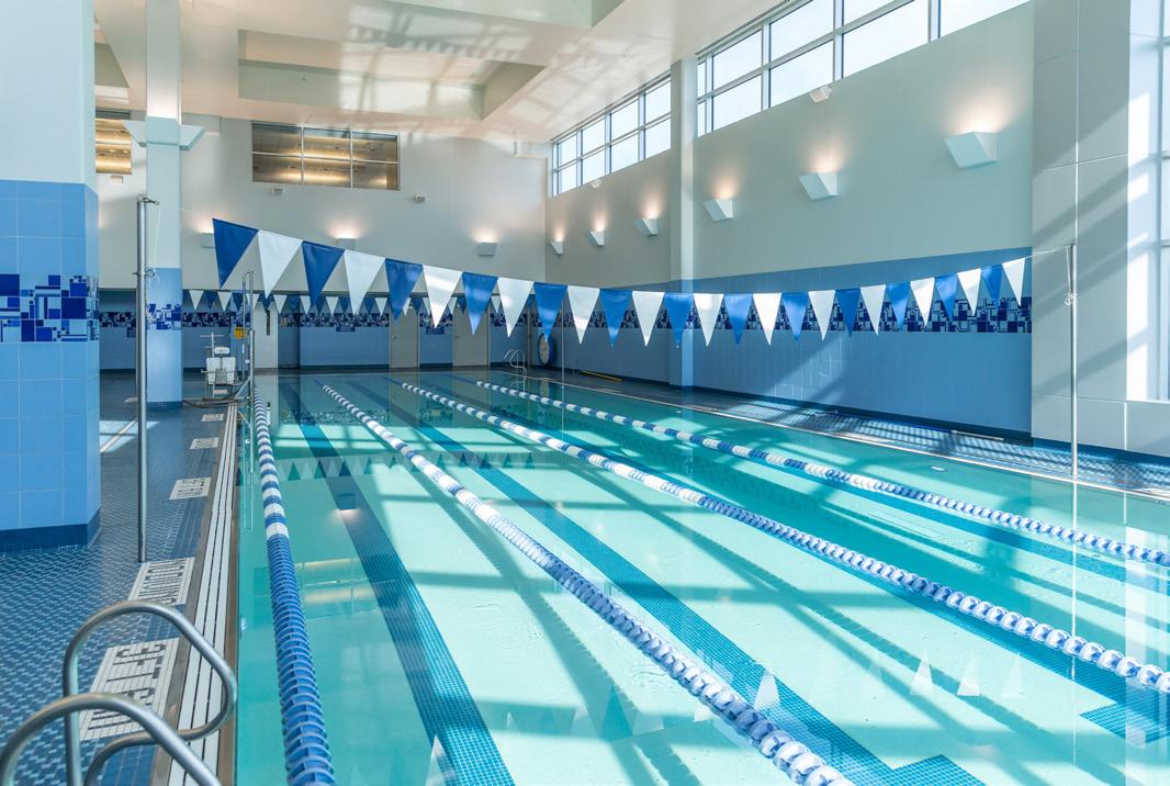 From the moment members enter the facility, its stateof-the-art design is immediately apparent. The LECOM Medical Fitness & Wellness Center offers a comprehensive range of fitness, training and recovery environments that stand out against leading fitness facilities nationwide. Members enjoy new, advanced functional, strength and cardio equipment, complemented by group exercise classes, small group training, personal training and personalized fitness plans tailored to individual goals. A dedicated Pilates Reformer studio and virtual programming options further expand access and flexibility. Beyond traditional fitness spaces, the facility includes a gymnasium for pickleball, basketball and volleyball open play, racquetball courts, an indoor track and a robust aquatics area featuring a lap pool, exercise pool and therapy pool. Unique offerings such as an indoor golf simulator and a tranquil Zen Garden balance recreation and restoration. For premium members, the experience is further elevated through access to a dedicated recovery room featuring compression therapy, massage chairs and other advanced recovery tools designed to enhance overall performance. Full-service locker rooms with towel service are available for members' comfort.