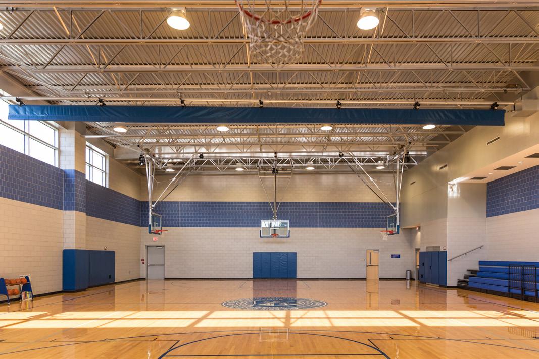 The gymnasium includes multiple basketball courts.