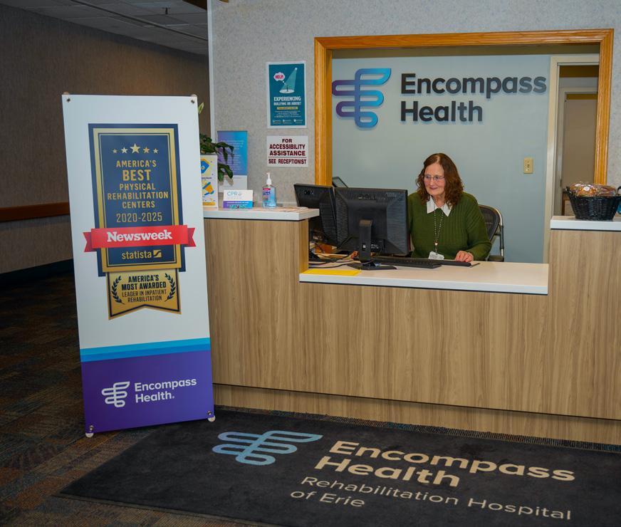 On the Cover: Encompass Health Erie is dedicated to providing the best inpatient rehabilitation services possible. The Erie hospital has longstanding accreditation by The Joint Commission, including specialty certifications in Stroke Rehabilitation, Brain Injury Rehabilitation and Parkinson’s Disease Rehabilitation. For the full story, see page 4.