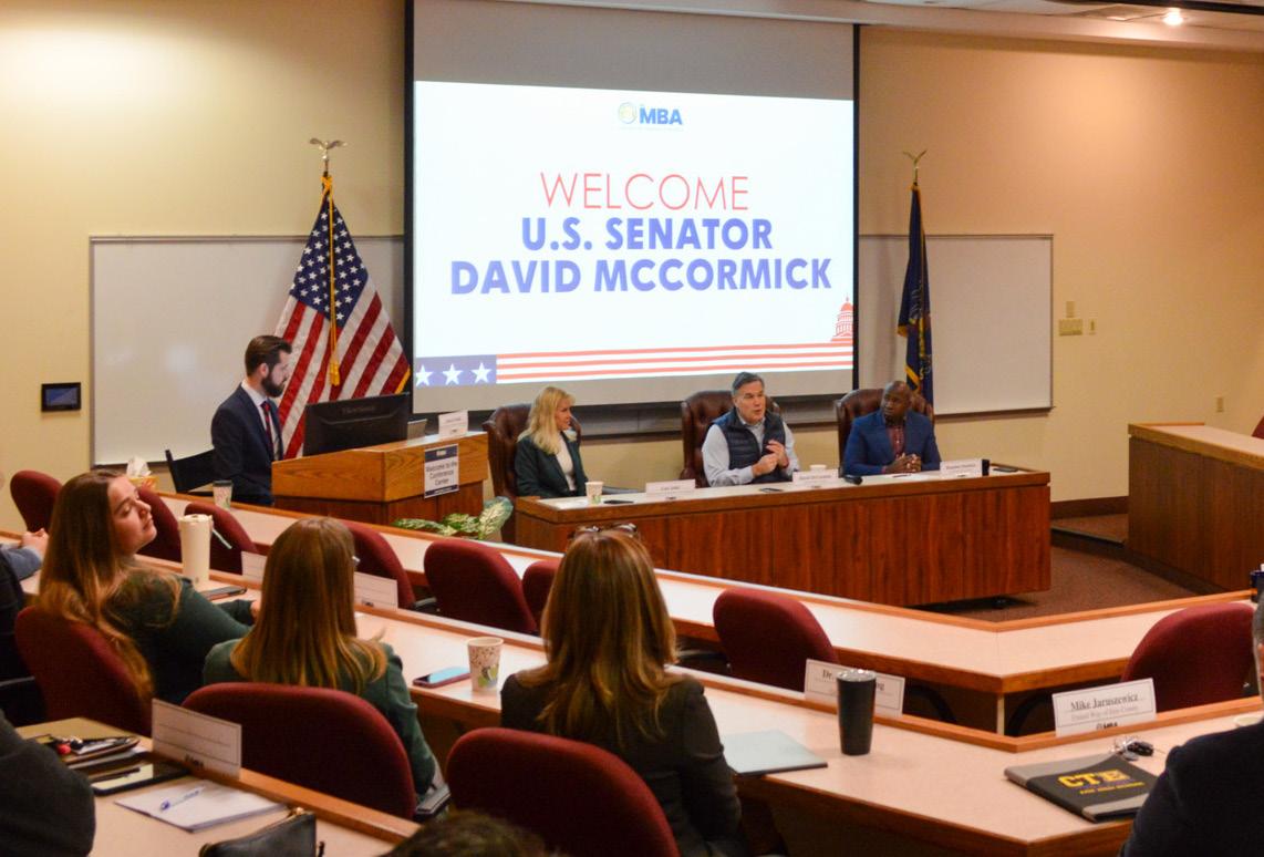 The MBA Auditorium was full of members and guests eager to hear from and talk to Senator McCormick.