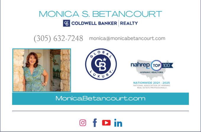 We could go on and on with many more details but, in short, we can’t imagine a real estate agent more worth her commission than Monica Betancourt. She is a charismatic person we always looked forward to seeing. She does her job to the highest standard, cares deeply about the happiness of her clients and commands respect throughout her industry and in Miami at large. She is simply the best.