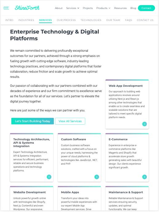 At ShineForth, we're a dedicated partner in your success, prioritizing long-term collaborations with clients who value innovative technology and digital transformation. With proven expertise and an unwavering focus on exceptional results, we offer a comprehensive range of tailored services to meet diverse client needs.