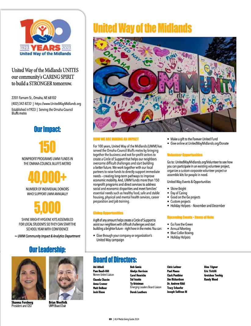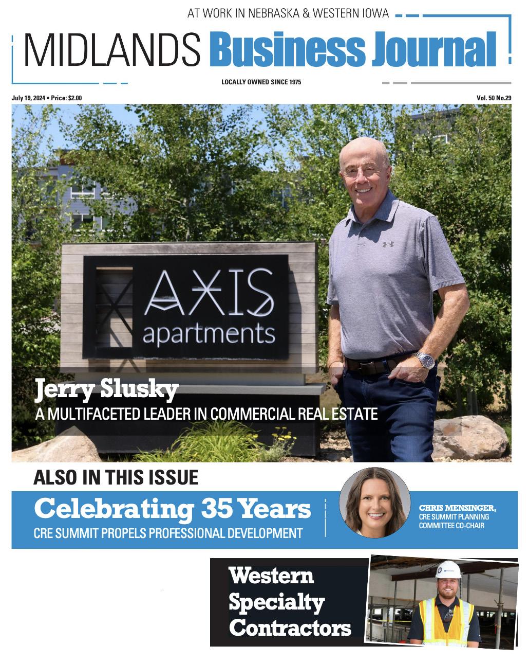 The Midlands Business Journal (ISSN 01944525) is published weekly by MBJ Inc. and is available for $2.00 per individual copy, $84 per year (print subscription) or $60 (digital only). Editorial offices are 1308 S. 119th St., Omaha, NE 68144. Periodical postage paid at Omaha NE POSTMASTER; Send address changes to Midlands Business Journal, 1308 S. 119th St., Omaha, NE 68144. All submissions to the Midlands Business Journal become the property of the Midlands Business Journal and will not be returned. EDITORIAL ADVERTISING (402) 330-1760