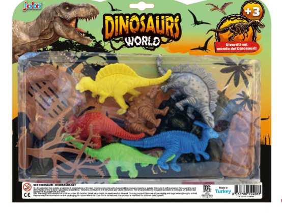 3 strumenti, 2 scacchetti di sabbia colorata e 5 dinosauri