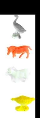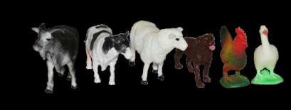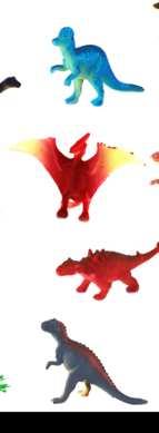 3 instruments and 2 colored sand cages and 5 dinosaurs