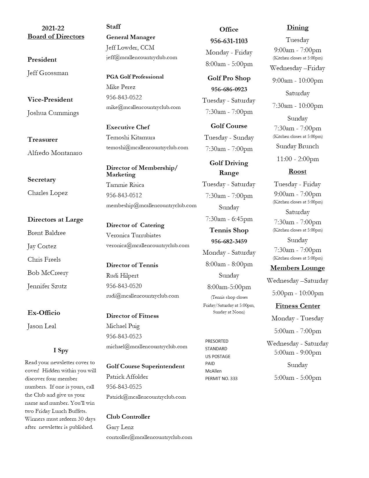 Newsletter MCALLEN COUNTRY CLUB OCTOBER 2022