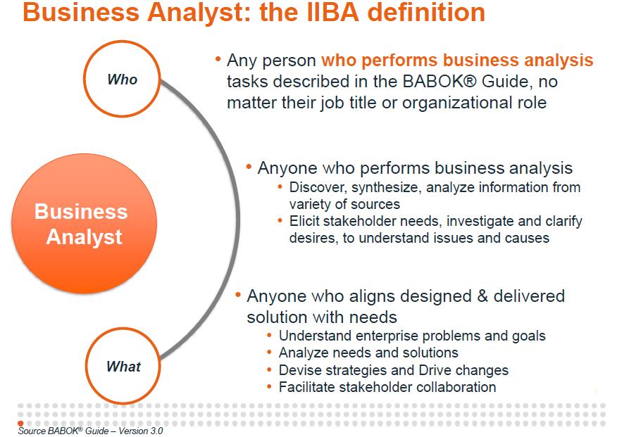• Helping identify the qualifications of business analysts (i.e. for the purposes of hiring new people)