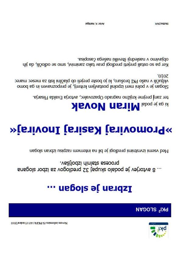 Interni razpis za PKI slogan-vodilna misel Predlogezbiramodo15.3., objava20.2.2010 V