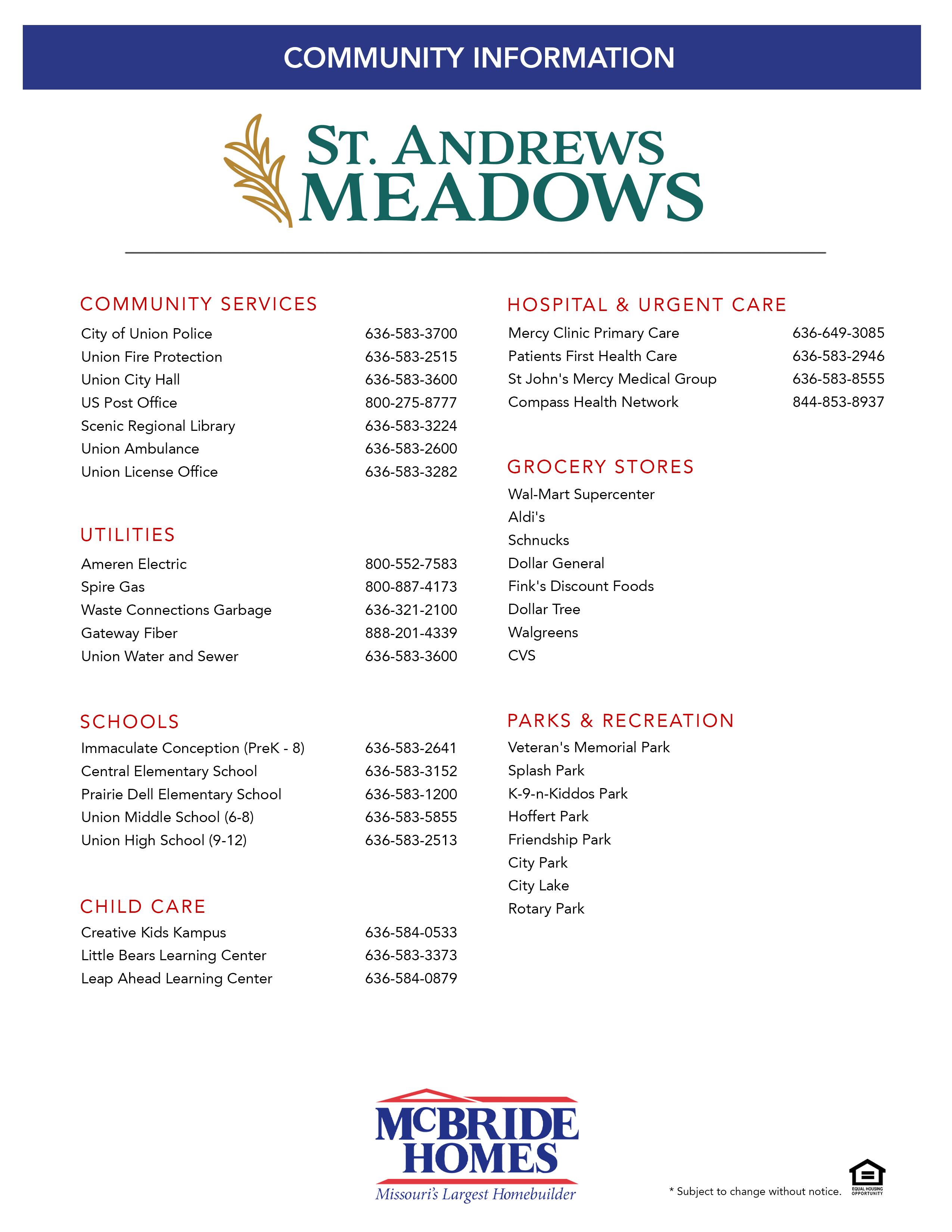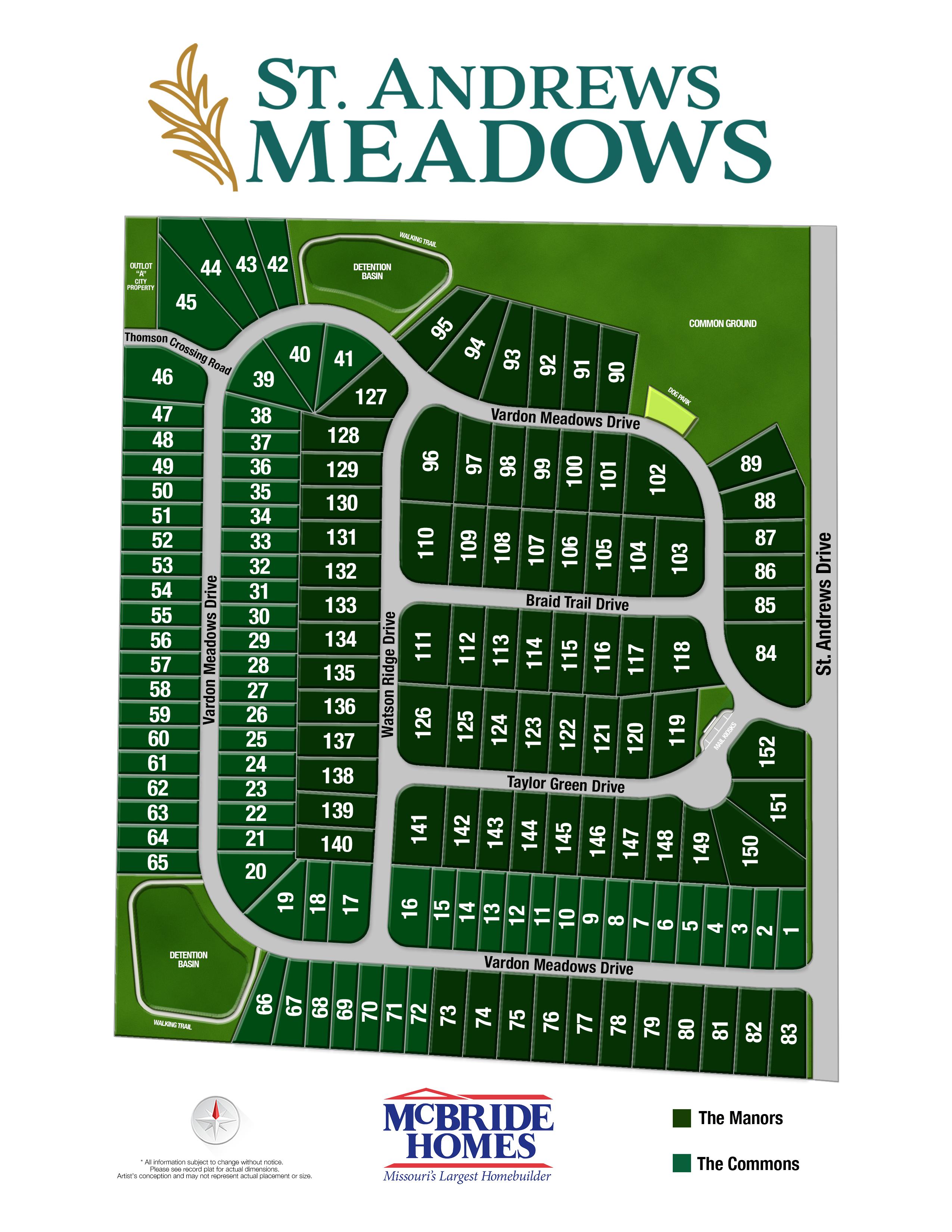 St. Andrews Meadows offers 152 homesites total in a great location in Union, MO. This community features easy access to Highway 50 and I-44 and is a short drive to shopping, entertainment, grocery, restaurants, bars and everything in between.