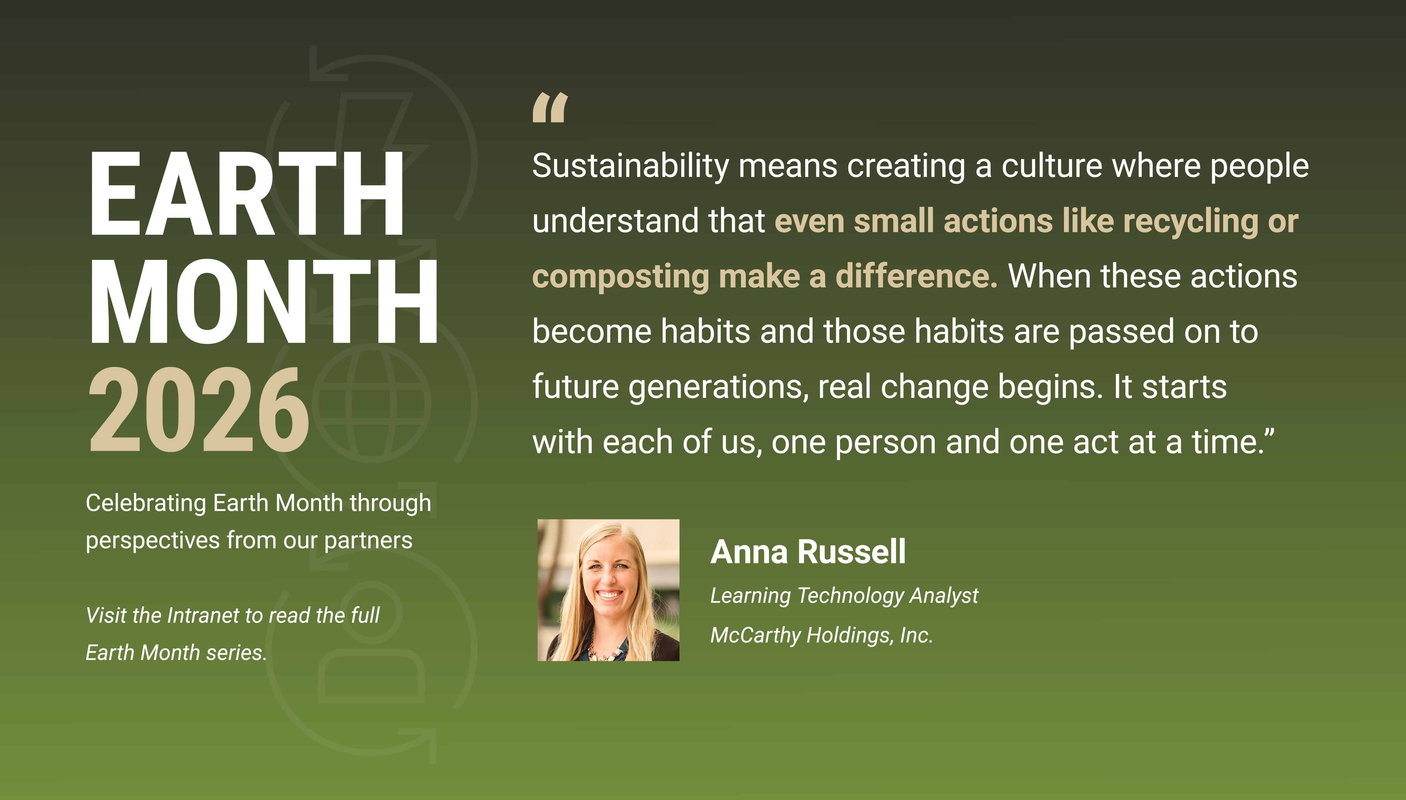 McCarthy Holdings, Inc. and its subsidiaries are proud to observe Earth Month in April by elevating the work underway across the enterprise, aligning processes, scaling innovation and driving measurable impact. We have great tradition and reputation as a high-quality builder — and being a responsible builder is part of that connection. Throughout April, the MHI Sustainability Team is bringing that commitment to life with four weekly spotlights connecting our people, projects and communities to a stronger, smarter and more sustainable future.