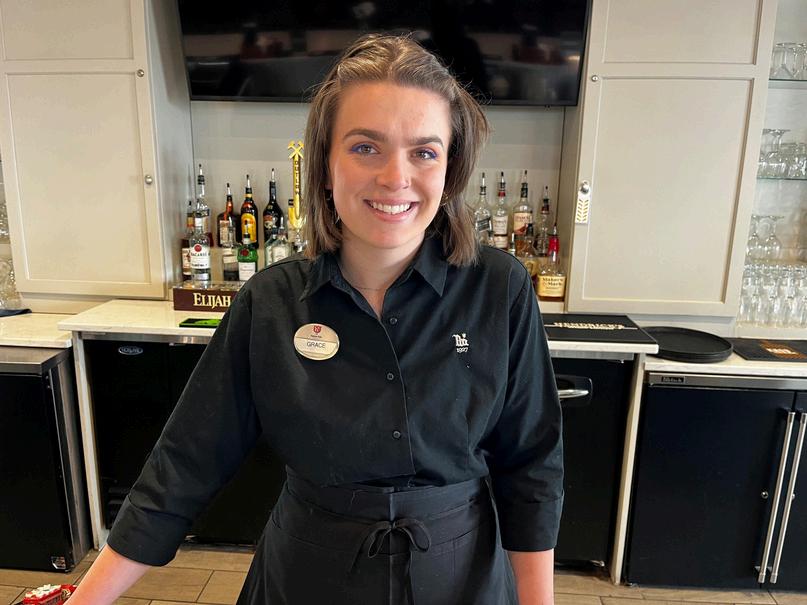 Grace Hammond has worn many hats d i g her three years at Holston Hills rom the Beverage Cart and Turn to the VKO hospitality tents and as one of the lead servers in the d Ross Dining Room, Grace stently goes above and beyond in ring exceptional service She mes our members and their guests smile that truly lights up a room, er team can always count on her to have every detail ready behind the scenes