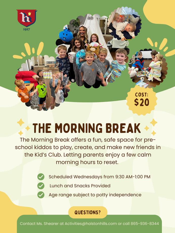 Spring Break just got even more fun with the Holston Herd! Join us for three exciting days at Kids’ Club filled with games, creative crafts, and plenty of indoor and outdoor adventures Let your little ones kick back, make new friends, and enjoy the fresh start of spring alongside the Herd crew.