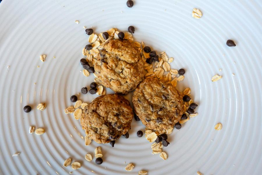 In a medium bowl, whisk together the flour and baking soda; set aside. Combine the butter with both sugars;beatonmediumspeeduntillightandfluffy.Reducespeedtolow;addthesalt,vanilla,andeggs. Beatuntilwellmixed,about1minute Addflourmixture;mixuntilalmostcombined Stirintheoatsand chocolate chips Chill dough for one hour to overnight Preheat oven to 350 degrees Use a small ice cream scoop to drop heaping tablespoon-size balls of dough about 2 inches apart on baking sheets linedwithparchmentpaper Bakeuntilcookiesaregoldenaroundtheedges,butstillsoftinthecenter, 8to10minutes Removefromoven,andletcoolonbakingsheet1to2minutes Transfertoawirerack, andletcoolcompletely