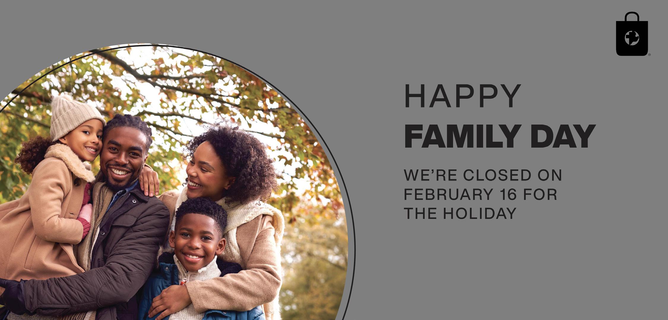 February 16, 2026, as we observe Family Day. Please take Feb 16 as a day to recharge and enjoy time for yourself. Thank you for all you do!