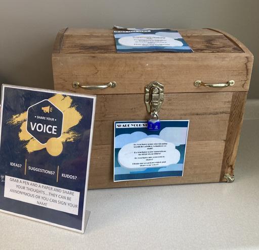 We now have a form to fill out when you notice a health and safety concern. This will allow us to ensure that concerns are heard and followed up with in a prompt manner. This will also help us to see if there are repeated concerns which may require us to address larger issues. These forms are beside the treasure feedback box in the breakroom.