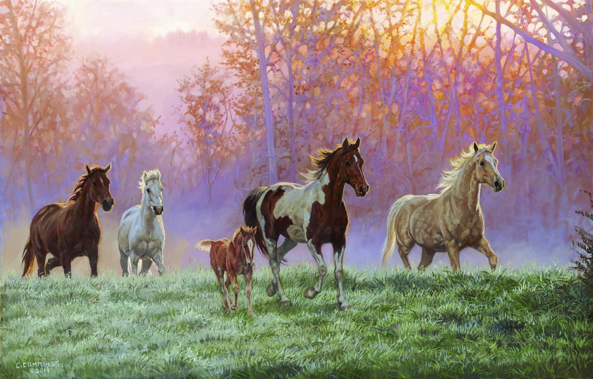 Chris Cummings: A genuine horse and art aficionado, Chris brings a lifetime of experience to her lifelike portrayals of horses and rural scenes. Her journey from Northern California to Oregon, with detours in wildlife biology and dairy farming, adds a distinctive touch to her artistry.