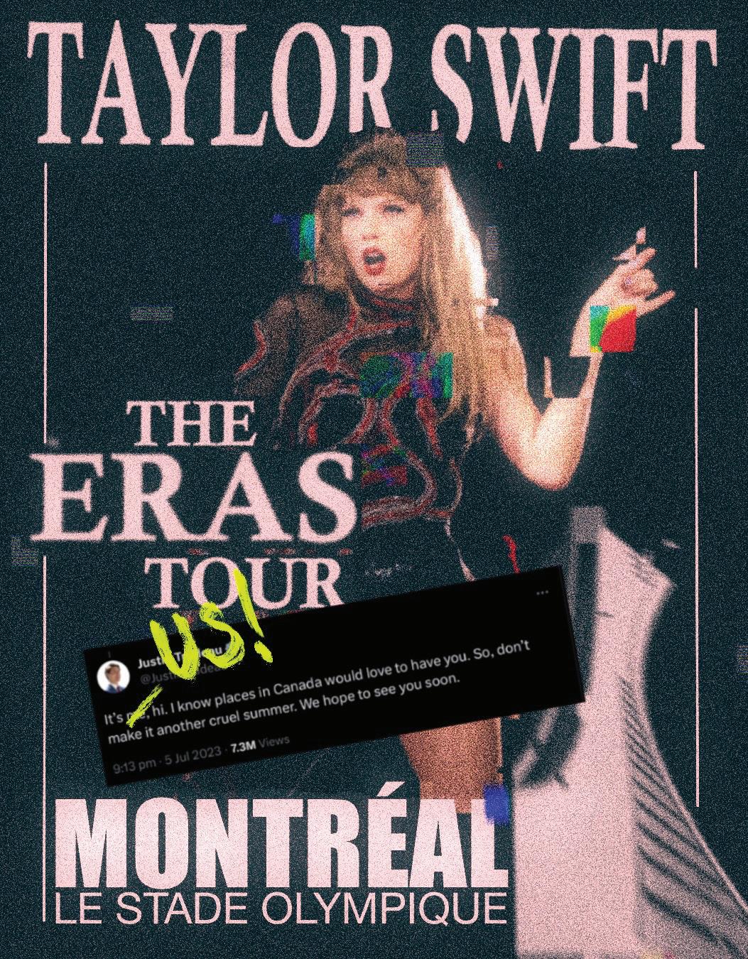 we would like to beg— ahem—invite you to perform for us. Yes, the Miss Americana persona is classic, but your neighbours to the North could use a little love to get us through the impending blizzards. And what better place than Montreal to perform “Forever Winter” for the first time
