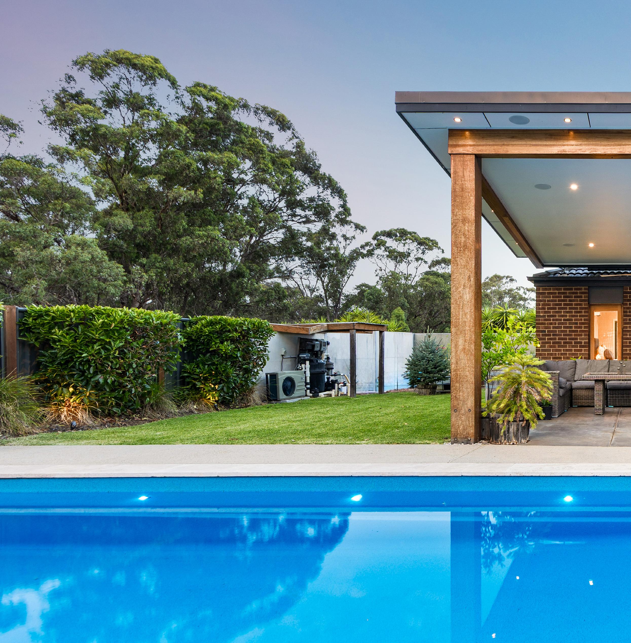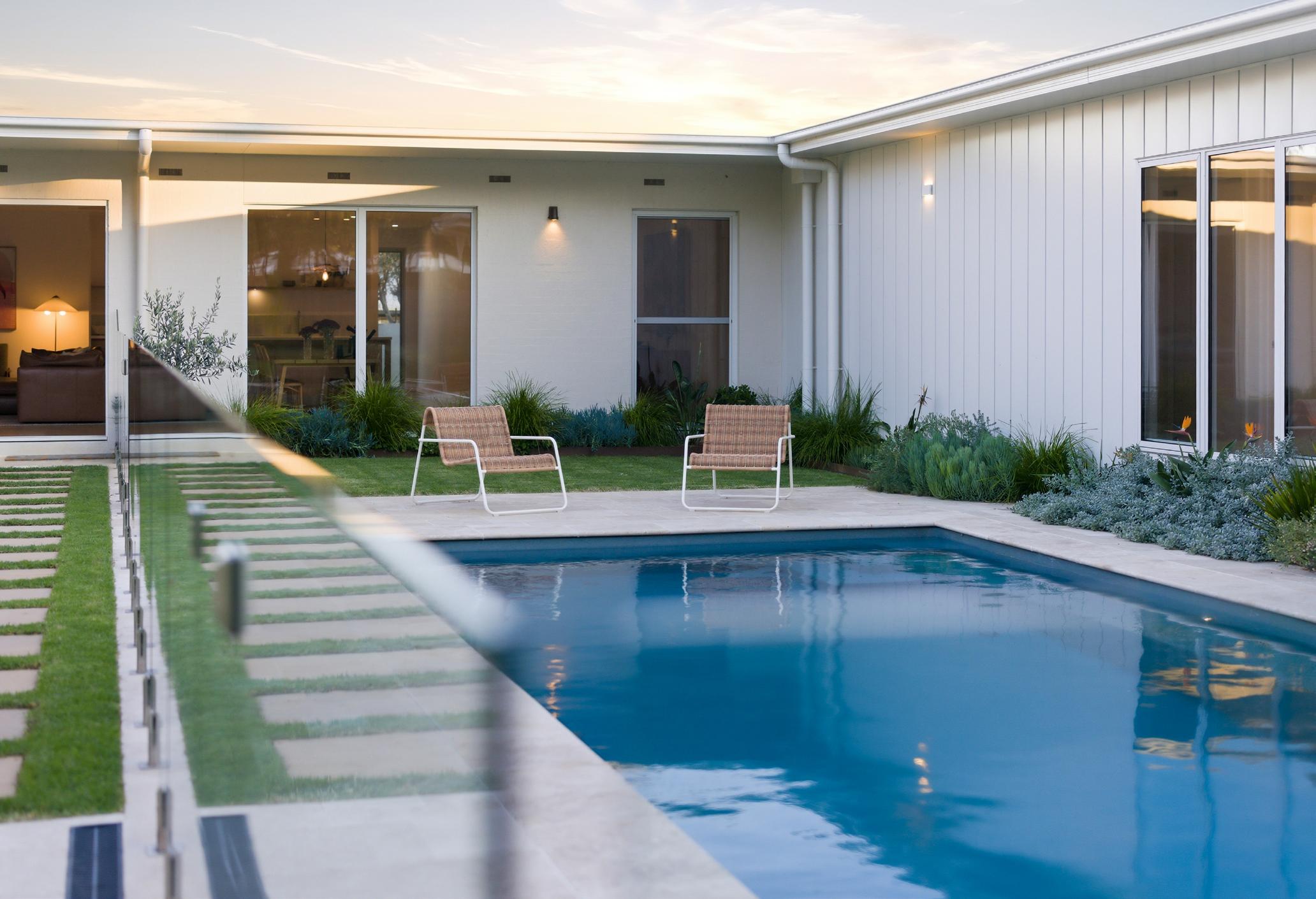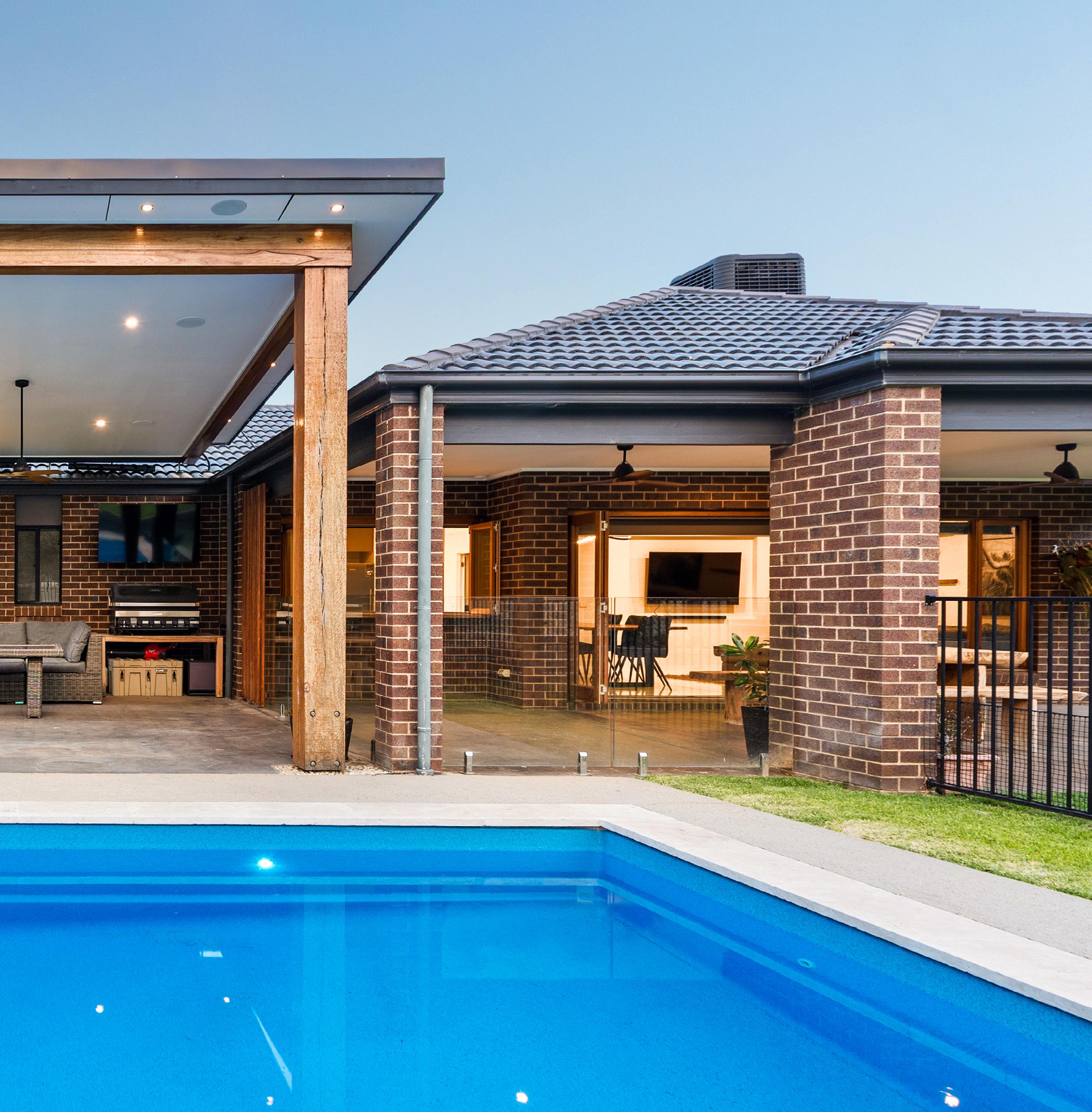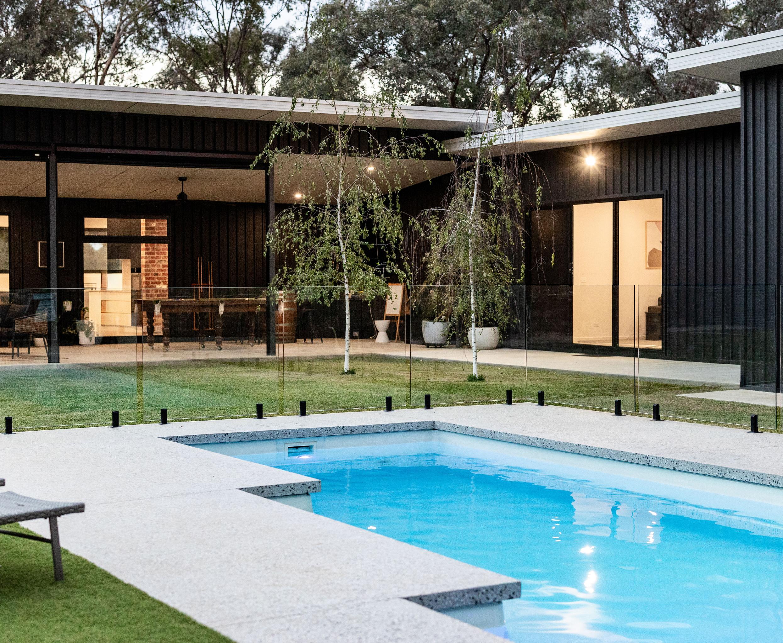 From the very beginning we knew we wanted the pool to be a central focal point. We love entertaining, so creating a large outdoor space where we could spend time with family and friends was really important to us. It has become one of our favourite areas of the home as a family. The kids love playing on the large grass area and spend hours in the pool during the warmer months. We’ve hosted many celebrations here, with kids swimming and playing