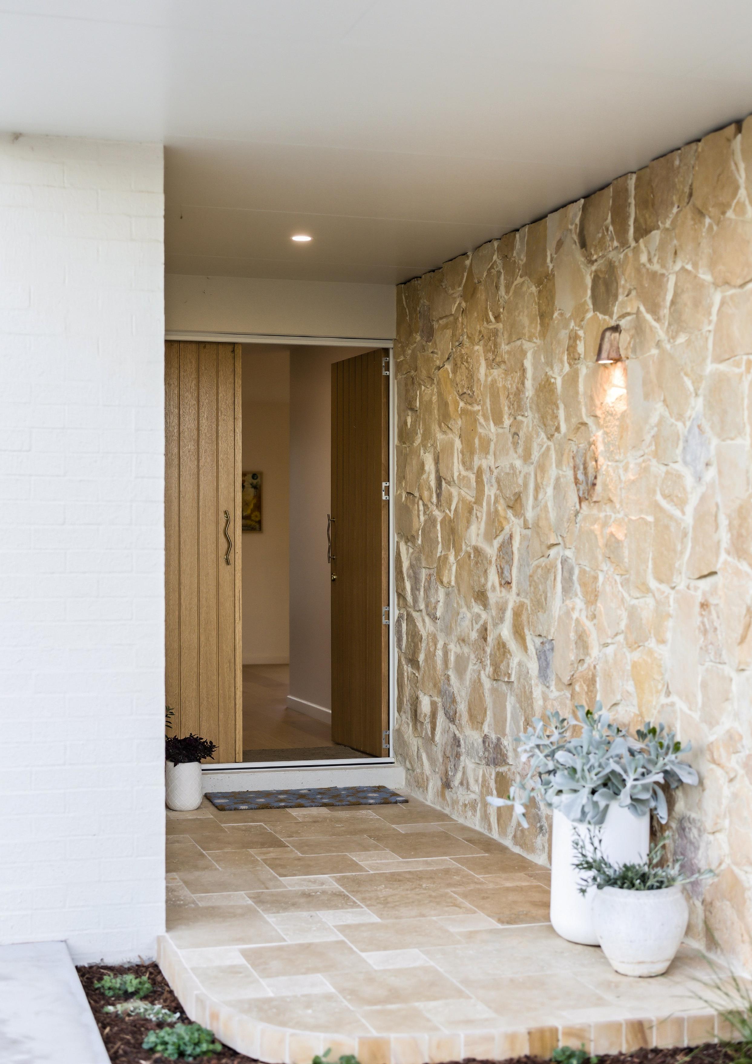 Inside, we wanted to continue that same organic, natural aesthetic. Engineered timber flooring, stone